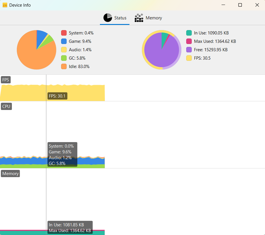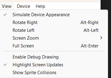 - Use the profiler (Device → Show Device Info) to monitor performance and memory usage.